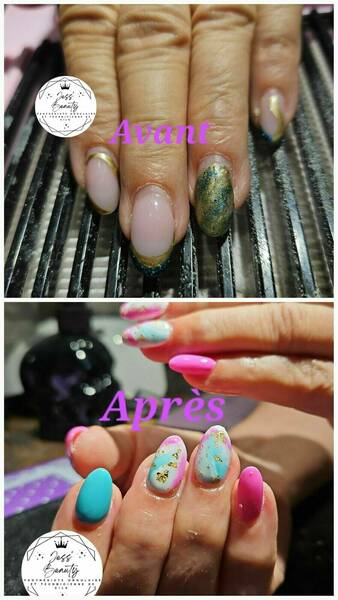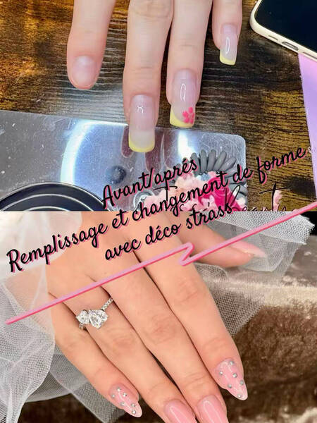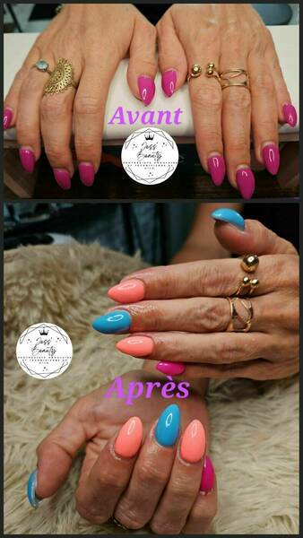 Avant/aprés. Dépose et pose capsules forme amande et déco.